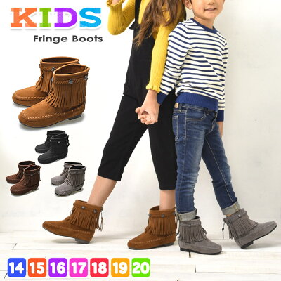 キッズ バックジップ フリンジ ブーツ TODOS(トドス) 全4色(TO-107) キッズ&ジュニア ショート アンクルブーツ スエード調 フラット 黒 ブラック グレー ブラウン