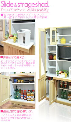 商品情報 材質 ■主材 ・ホワイト・ナチュラル ・前面:パイン材 ・ブラウン ・前面:ラバーウッド材 ■全色共通 ・ウレタン樹脂塗装 ・天・側面:プリント化粧板 サイズ ■本体 ・幅90 奥行40 高178cm ■上部収納 ・幅55(27) 奥行35.5 高34.5(112)cm ・棚板幅55(27) 奥行28.5cm ■オープンスペース上 ・幅55 奥行35.5 高34.5cm 1500w2口コンセント ■オープンスペース下 ・幅55 奥行35.5 高36cm スライドカウンター ■下部収納 ・幅55(27) 奥行35.5 高55cm ・棚板幅55(27) 奥行28.5cm ・棚段数6(9)cm×5(4)段 カラー ■ホワイト・ナチュラル・ブラウン 特徴 ■安心の国産品。