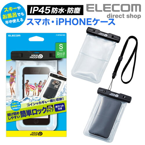 エレコム スマートフォン 用 防水 ・ 防塵 ケース 簡単ロック ポケット付 プラスチック蓋 スマホ アイフォン iphone Sサイズ 水着 の色に合わせてオシャレに! ブラック P-WPSK01BK