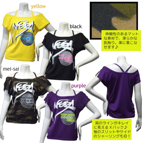 その「NSSA」が全面プロデュースを行ったダンスウエアが この秋、いよいよ販売スタート! 個性派カラーが目を引く、ストレッチ素材の肩見せTシャツ。